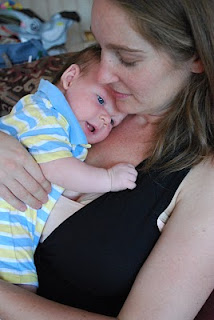 I spent my birthday doing some of my favorite activities -- staring at myself in the mirror, doing some tummy time, climbing on Mom, and getting walked in the Ergo.